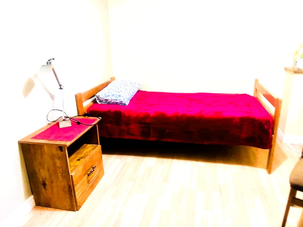 1 room in a 2-bedroom basement apartment with private entrance. Kitchen and bathroom shared with one quiet, long-term male tenant. Nice older couple living upstairs. Clean, safe area, close to shops and public transit. Walking distance to Jaswoj Bakery. Call Hania: 647-855-3677
