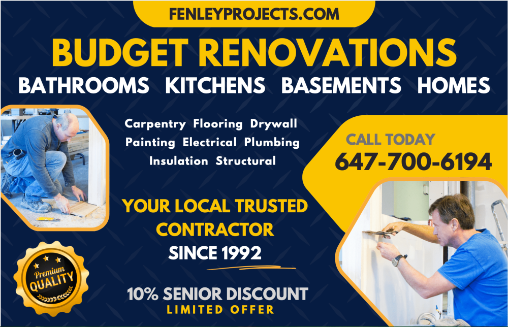 RENOVATIONS | Bathrooms, Kitchens, and Basements. Over 30 years in business! We specialize in: • comprehensive bathroom and kitchen renovations • basement finishing • additions and extensions • patios, decks, and exterior work • custom joinery and interior finishes. High quality, solid materials, and punctuality. Affordable prices (Polish discount). Call today: (647) 700-6194 www.FenleyProjects.com