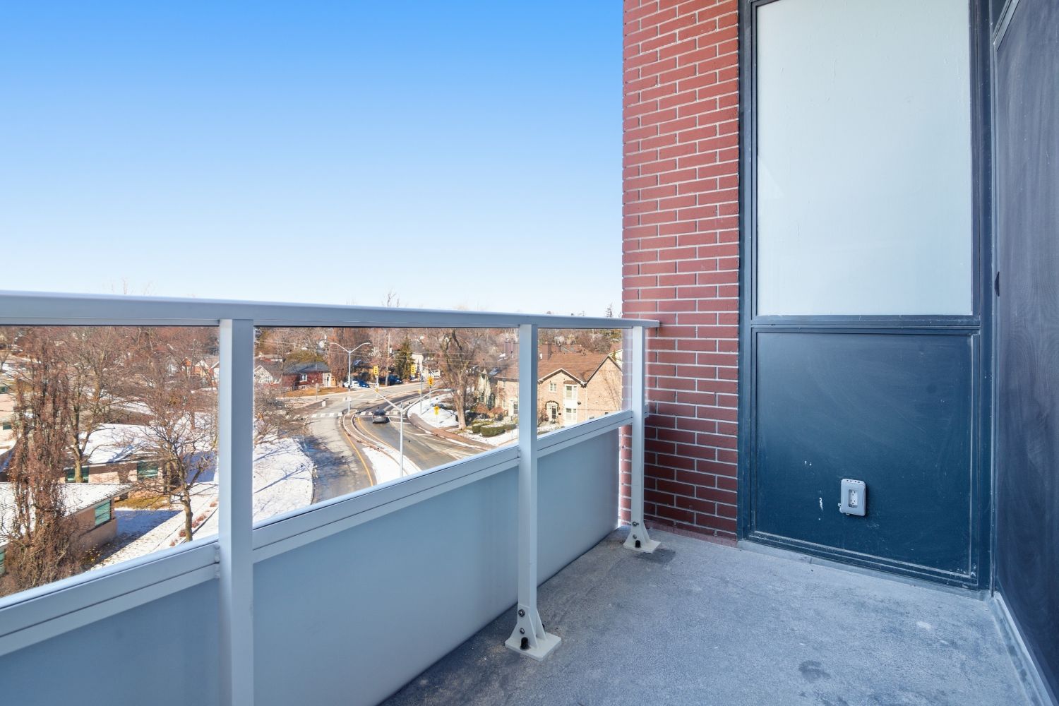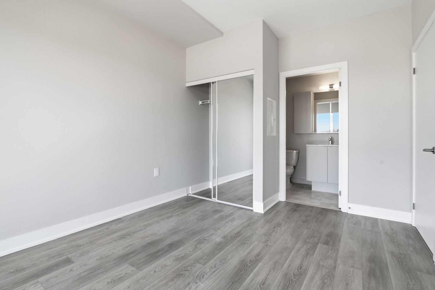 Apartment 2 junior suite with two bathrooms and a balcony for rent. The apartment is located in Burlington in a new building on the fourth floor one block from the lakefront. The apartment includes underground EV parking and a locker. The building offers indoor and outdoor amenities including a gym, a rooftop terrace, and a party room. For more information, please contact Krzysztof at 647 403 8394.