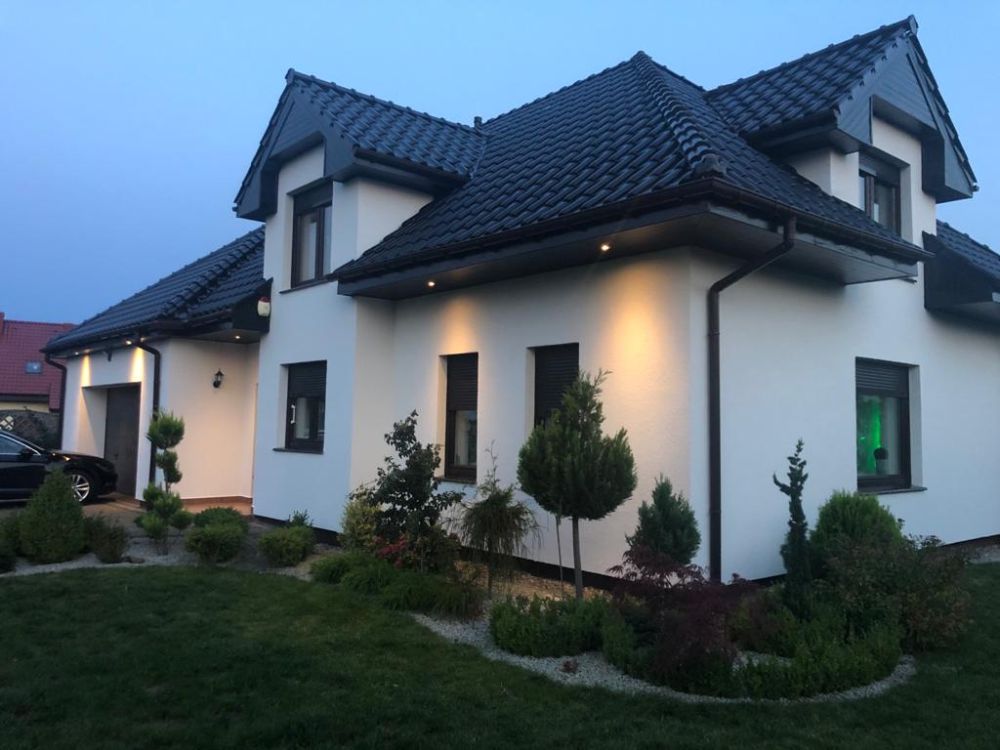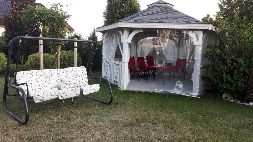 This attractive villa in Lusówek, near Poznań, is a prestigious location, close to the Lusówek Lake, schools, and kindergartens with Dino and Biedronka stores. It boasts excellent connections to Poznań via a dual carriageway and Ławica International Airport. This 16-year-old house, recently renovated, offers 242 m² of space on two levels and boasts a beautiful garden on a 1,100 m² plot, fully fenced with an intercom gate, a remote-controlled automatic gate, an alarm system, and a camera. The ground floor comprises a vestibule, hallway, spacious living room with dining area, open-plan kitchen, laundry room, study room (suitable for work or a guest bedroom), and a bathroom with a shower. The real highlights of this property are the winter room and garden with a white wooden gazebo with electricity and cable internet, and a jacuzzi next to the gazebo. The gazebo is a perfect place for family gatherings and get-togethers with friends, as well as for relaxing with a glass of wine while watching internet TV on the big screen. Upstairs, there are three bedrooms with full bathrooms and a storage unit for household items. Each bedroom has a built-in wardrobe, which helps keep things organized.