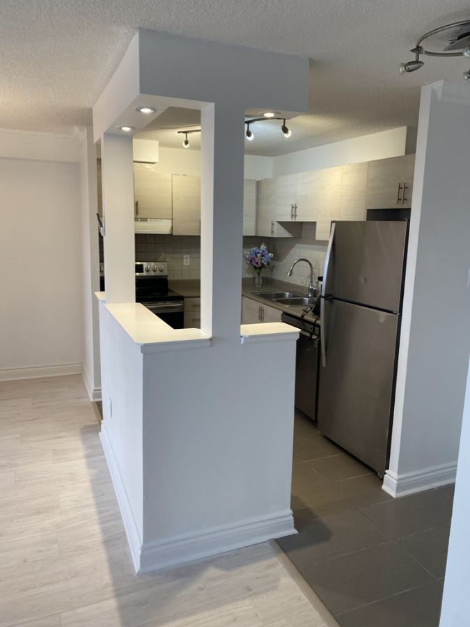Rental newly renovated 2 bed 1 bath condo by owner, new floors and painting, 2 parking space, balcony. All utility included (water, hydro, heat). Air condition, combo washer/dryer. Move in readyContact. Teresa - 416-629-5358